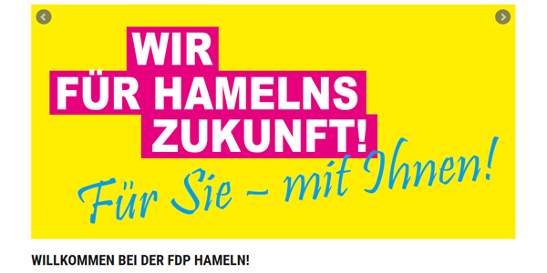 Wie kann man Inhalte und Ziele besser verdeutlichen als durch eine aussagekräftige Visualisierung. Sei es durch ein Bild oder einfach durch Text und farbige Elemente. Genau das ist meine Aufgabe bei der Pflege des Sliders auf der Startseite der Homepage des FDP Stastverbands Hameln und der FDP Fraktion im Stadtrat Hameln – selbstverständlich passend zu den Designvorgaben der FDP selbst.